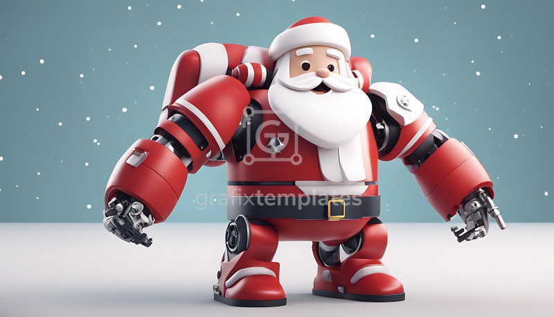 This captivating 3D illustration features a charming “Robo Santa,” perfectly merging the world of advanced technology with the warmth of Christmas traditions. The character is designed with a glossy, toy-like finish, sporting a vibrant red body suit and metallic silver accents. Distinctive holiday features, such as a fluffy Santa hat and a mechanical interpretation of a white beard, give the robot a friendly and festive personality. Set against a clean studio background or a soft winter bokeh, the lighting highlights the smooth textures and reflective surfaces of the robot’s casing. This image is a versatile visual asset for tech companies, startups, and digital marketers looking to convey a message of innovation and celebration. It works exceptionally well for social media posts about Artificial Intelligence, electronic product sales, or simply adding a modern, sci-fi twist to standard holiday messaging. All images are AI-generated for creative purposes only, with no basis in reality. Any resemblance to real individuals or events is coincidental. Viewer discretion is advised.
