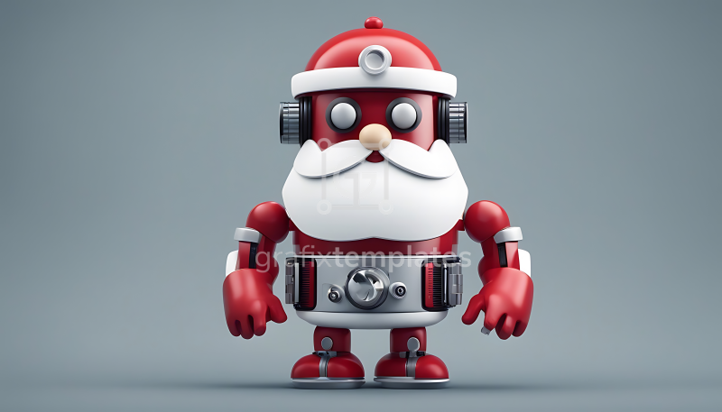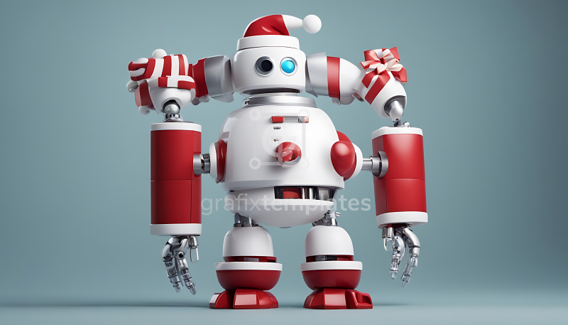 This captivating 3D illustration features a charming “Robo Santa,” perfectly merging the world of advanced technology with the warmth of Christmas traditions. The character is designed with a glossy, toy-like finish, sporting a vibrant red body suit and metallic silver accents. Distinctive holiday features, such as a fluffy Santa hat and a mechanical interpretation of a white beard, give the robot a friendly and festive personality. Set against a clean studio background or a soft winter bokeh, the lighting highlights the smooth textures and reflective surfaces of the robot’s casing. This image is a versatile visual asset for tech companies, startups, and digital marketers looking to convey a message of innovation and celebration. It works exceptionally well for social media posts about Artificial Intelligence, electronic product sales, or simply adding a modern, sci-fi twist to standard holiday messaging. All images are AI-generated for creative purposes only, with no basis in reality. Any resemblance to real individuals or events is coincidental. Viewer discretion is advised.