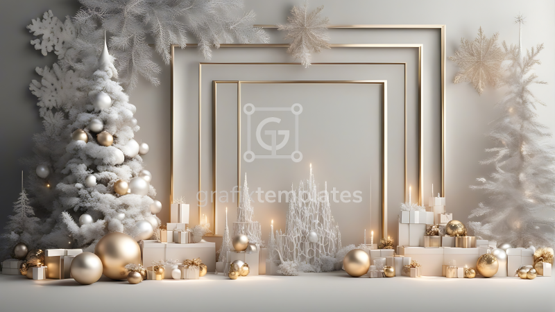 A premium collection of 3D rendered Christmas backgrounds and product display stages. These festive scenes feature elegant podiums, open frames, and copy spaces surrounded by holiday decorations such as frosted pine trees, sparkling gold and silver ornaments, wreaths, and wrapped gift boxes. Available in various themes from modern white minimalism to classic warm red and gold, these backdrops are perfect for holiday product mockups, seasonal sales banners, digital greeting cards, and social media advertisements.